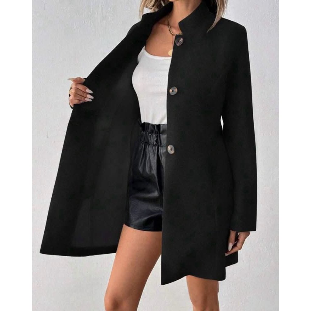 Velmi příjemný a praktický kousek do každého šatníku Elegantní dámský kabátek, který je ideálním kouskem pro přechodné období. Je ušitý v jednoduchém, nadčasovém střihu s rovnou linií a zapínáním na knoflíky. Stojáčkový límeček působí moderně a dodává outfitu šmrnc. Kabátek je lehký, přesto dostatečně hřejivý, a skvěle se kombinuje jak s kalhotami, tak se šaty či sukní. Dostupný v neutrálních barvách – šedé a černé – takže se stane univerzálním kouskem do každého šatníku. Perfektní volba do práce, na schůzku i na běžné nošení.