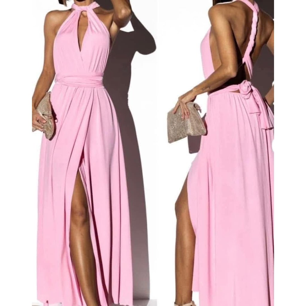 Objevte šaty, které se přizpůsobí vám – ne naopak. Tyto elegantní variabilní šaty s vázáním umožňují desítky stylů nošení podle vaší nálady, příležitosti i postavy. Ramínka a pásky můžete uvázat na různé způsoby – jako halter, na jedno rameno, s rukávy nebo bez, s výstřihem do V, překříženě na zádech...
